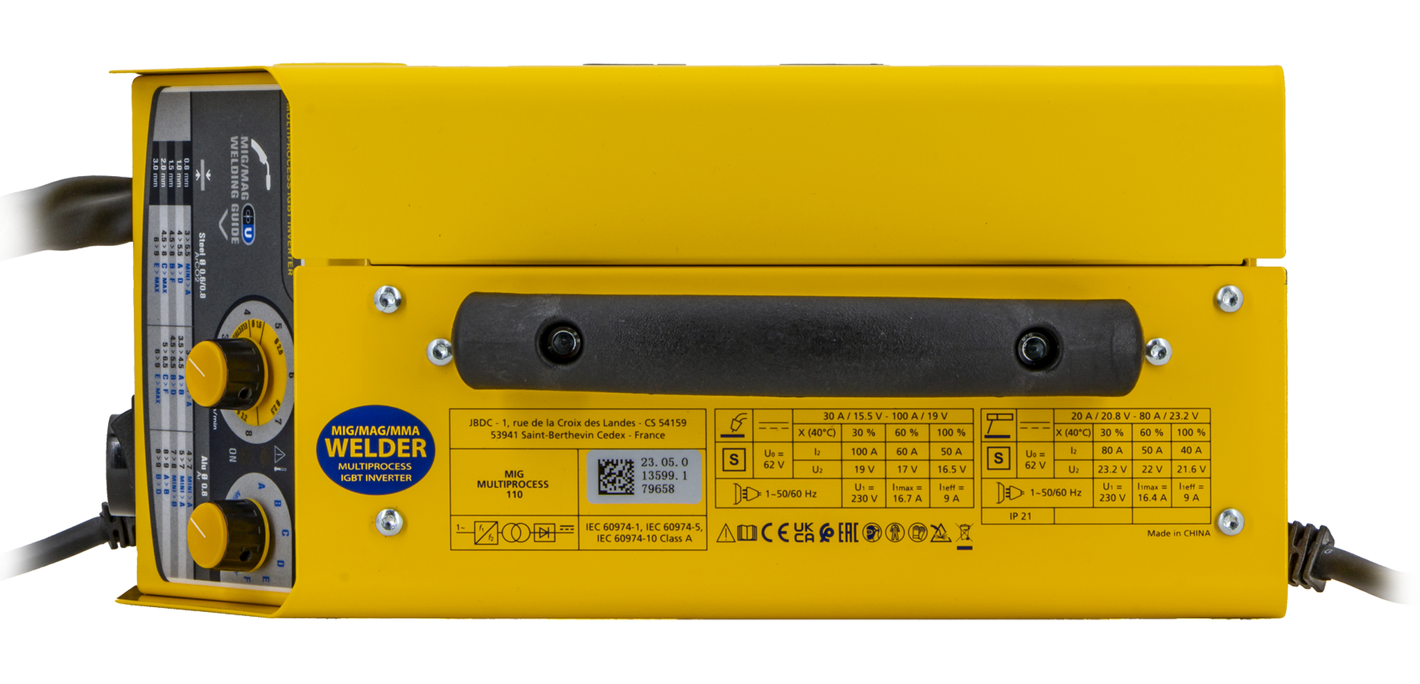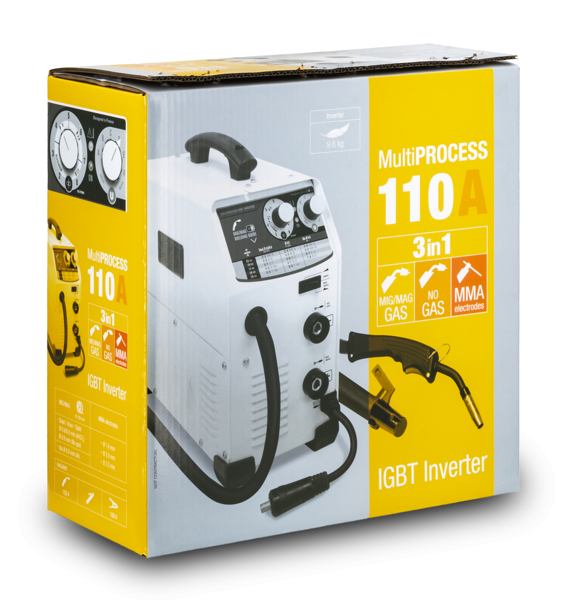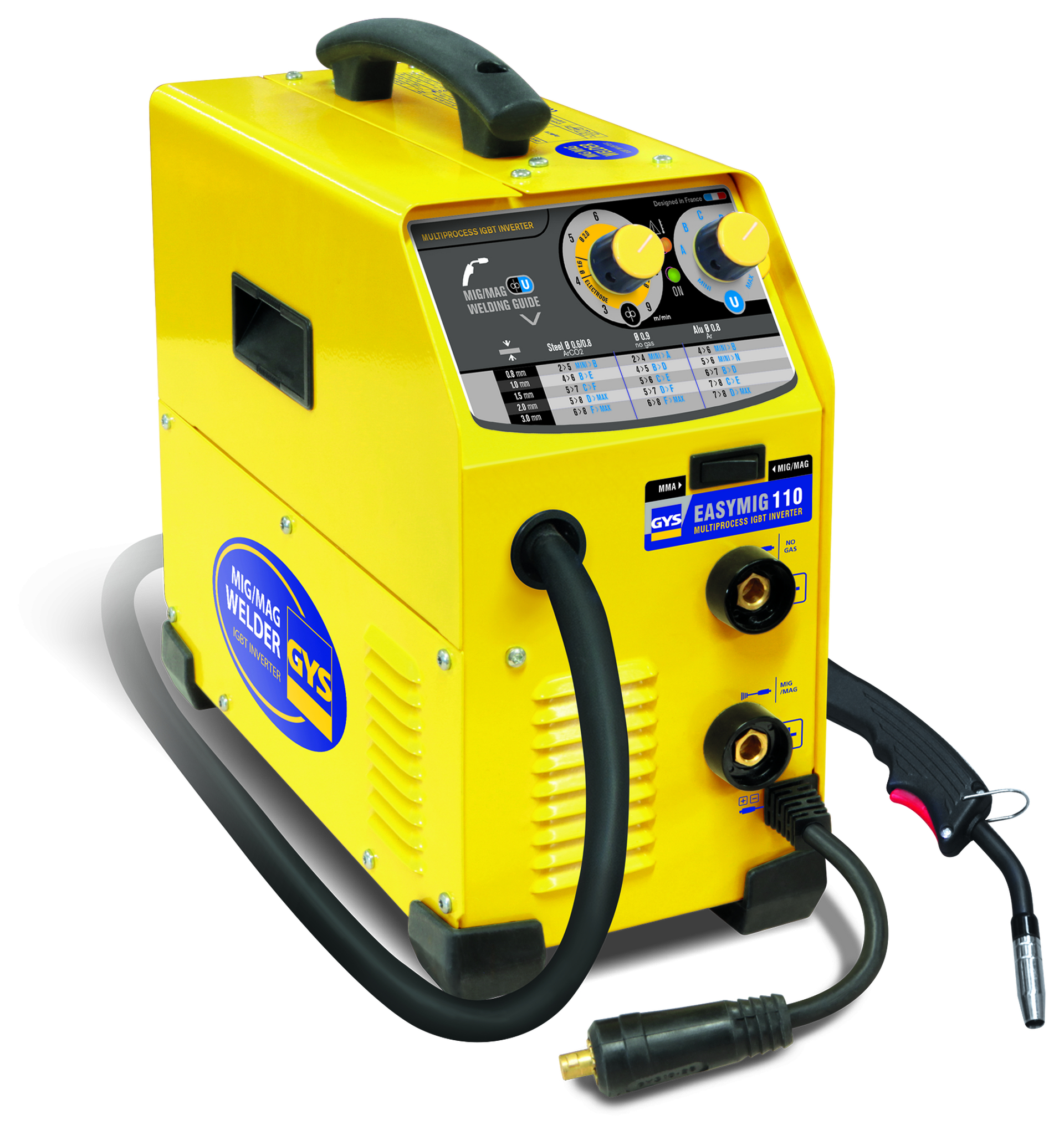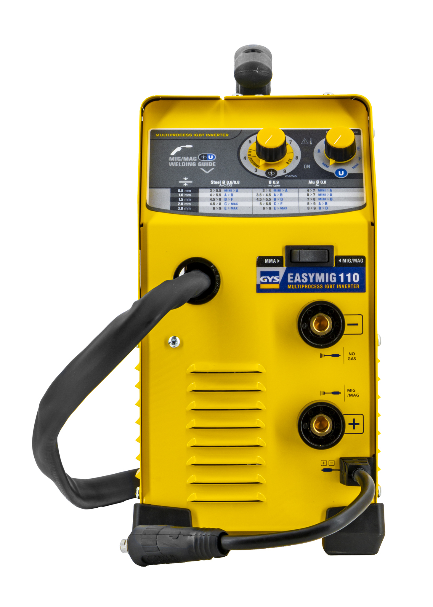 EASYMIG 110 je poloautomatický stroj kombinující svařovací procesy MIG/MAG, drát Thicket a MMA. Díky intuitivnímu rozhraní je snadné upravit napětí a rychlost drátu. Ultralehký, je velmi snadný na nošení. EASYMIG 110 je doporučen pro svařování ocel, nerezová ocel a hliník jako příležitostné.