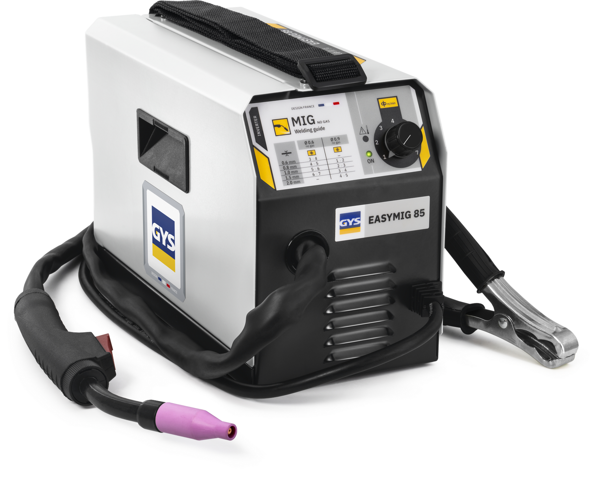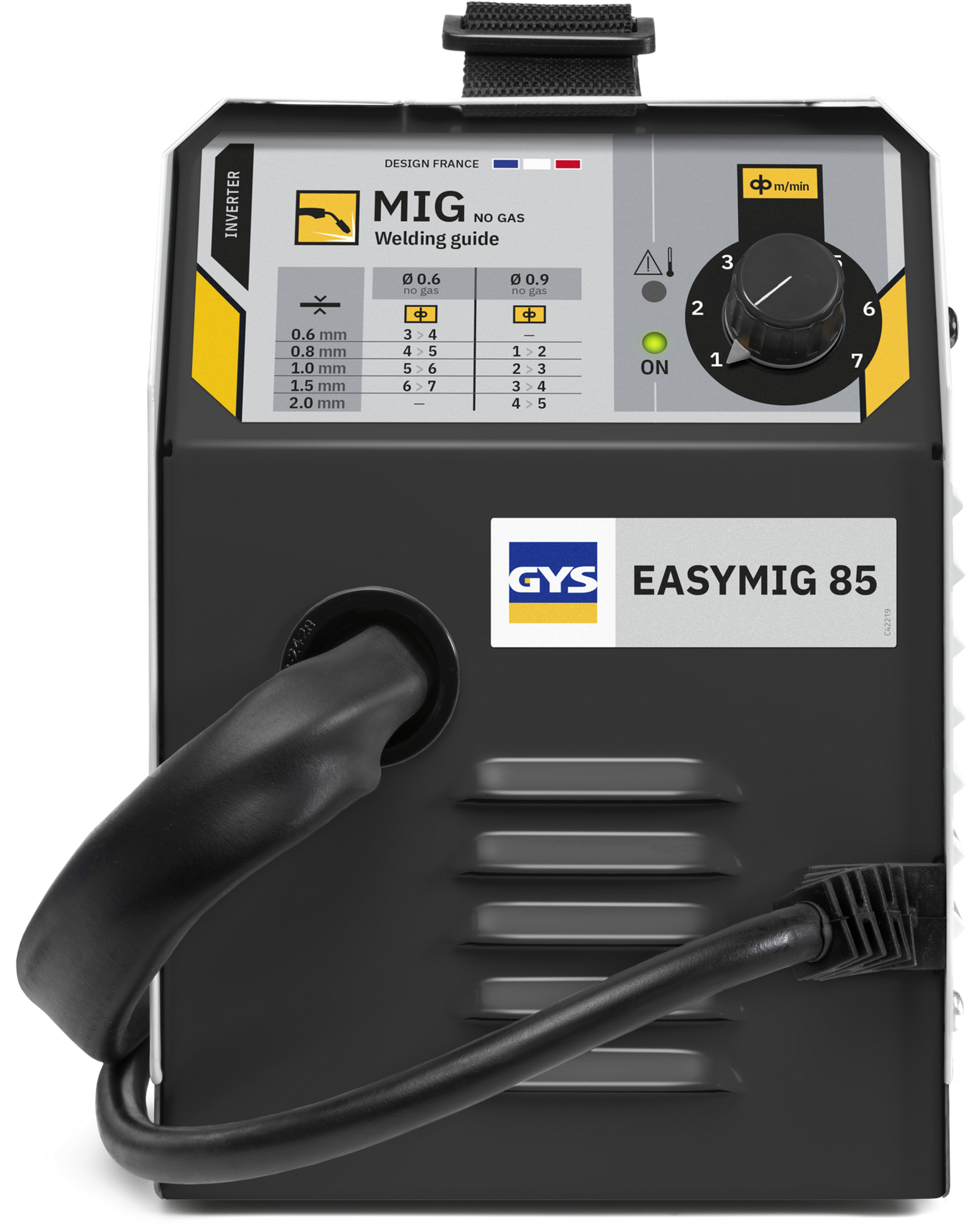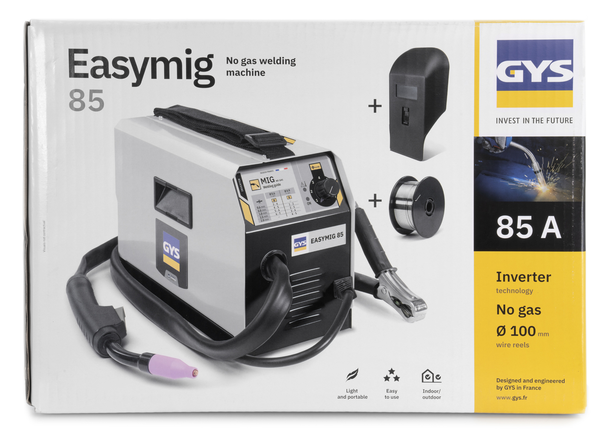 EASYMIG 85 je jednofázový svařovací stroj určený výhradně pro práci MIG bez plynu s drátem s tavidlem. Velmi snadné na použití, jedinou úpravou je volba rychlosti posuvu drátu. Doporučuje se svařovat ocel do 2 mm, svařovací stroj EASYMIG 85 je Ideální pro všechny druhy práce, i venku.