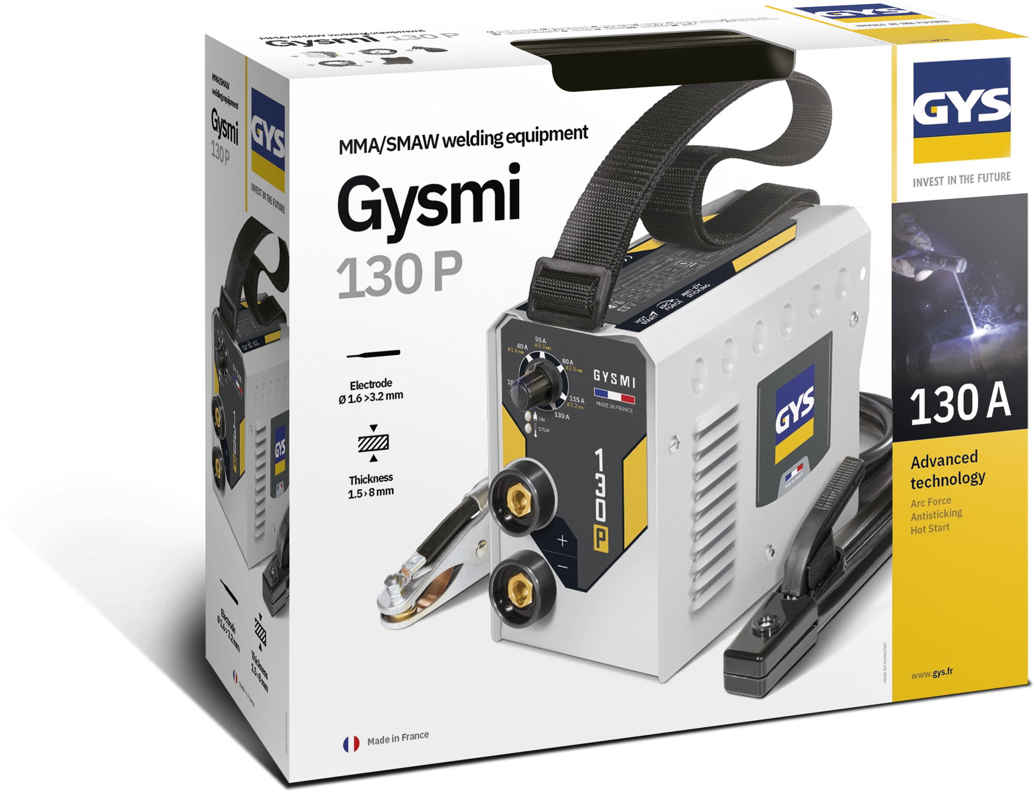 S hmotností 2,9 kg a malou velikostí GYSMI 130P splňuje potřeby kutilů nebo profesionálů hledajících jednoduché svařovací řešení do tloušťky 8 mm.