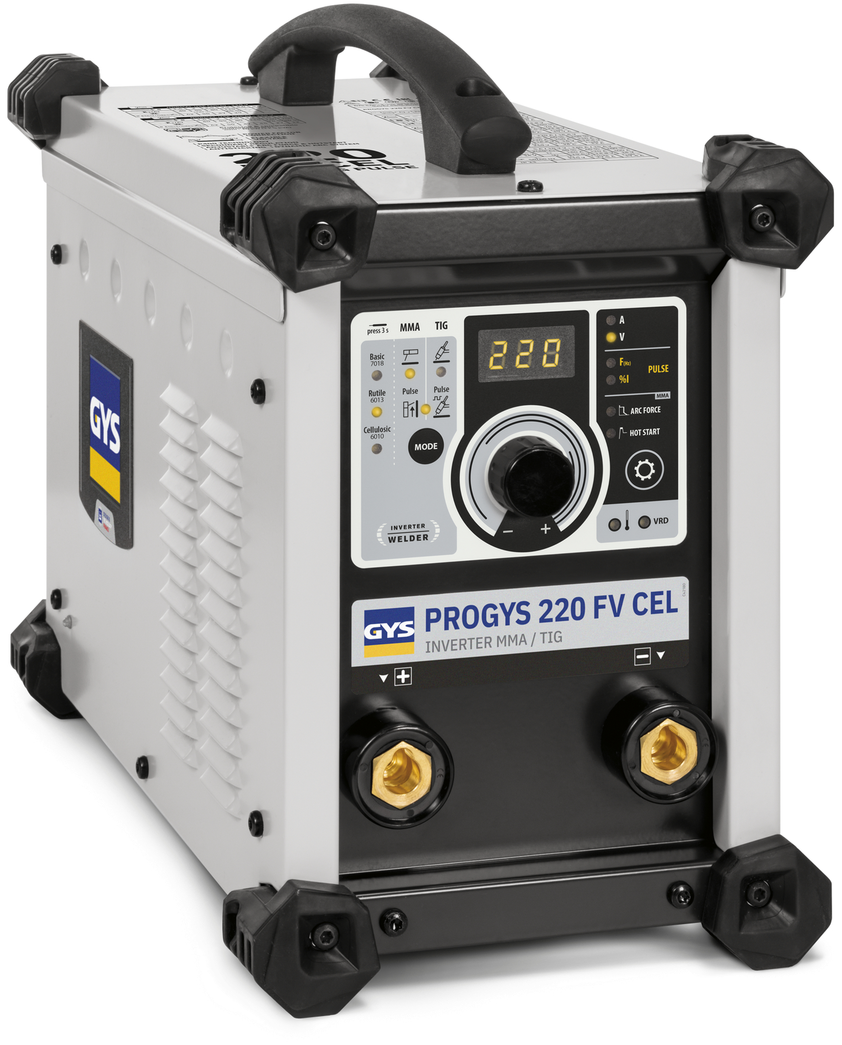 INVERTER WELDER MACHINE (MMA) Cel PROGYS 220 FV kombinuje nejnovější technologii svařování s intuitivním uživatelským rozhraním. Jeho zapalovací dynamika mu umožňuje spolehlivě svařovat všechny typy elektrod až do šířky 5 mm, vertikálně dolů nebo nahoru.