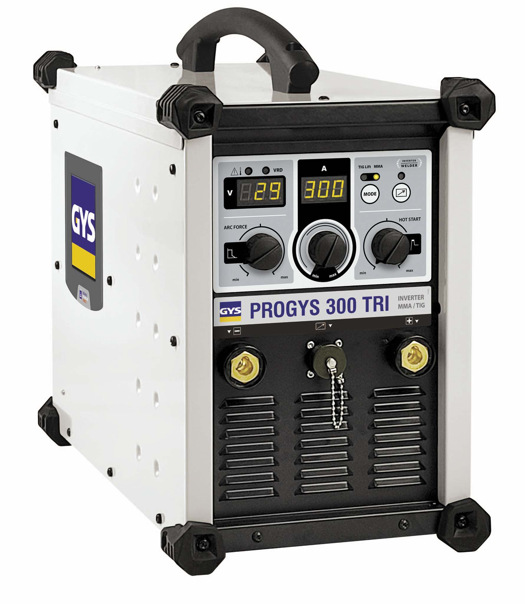 INVERTOROVĚ POTAŽENÁ ELEKTRODOVÁ SVAŘOVACÍ STANICE (MMA) Progys 300 TRI je třífázový MMA/TIG generátor s vynikajícím svařovacím výkonem. Tato rozvodna je navržena s využitím zesílené elektroniky a nabízí výrobcům maximální produktivitu i v nejnepříznivějších prostředích. Jeho zařízení VRD, které lze aktivovat interně, chrání svářeče v oblastech ohrožených výbuchem.