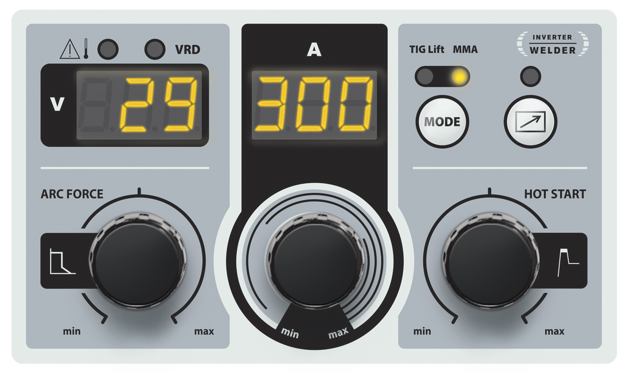 • Přijímá rutilové, základní, nerezové, litinové elektrody, celulózové a hliníkové elektrody (až do Ø 6 mm)