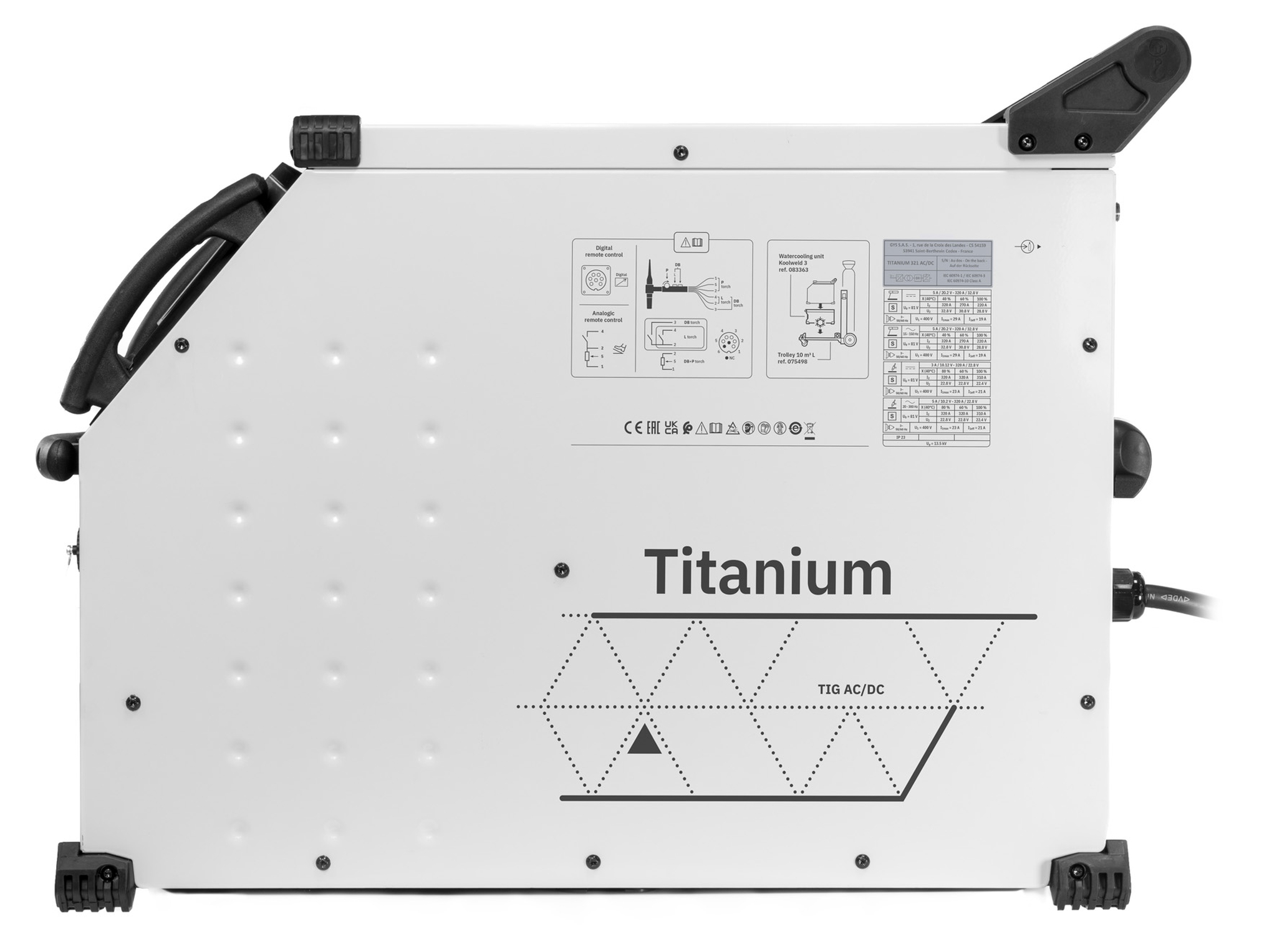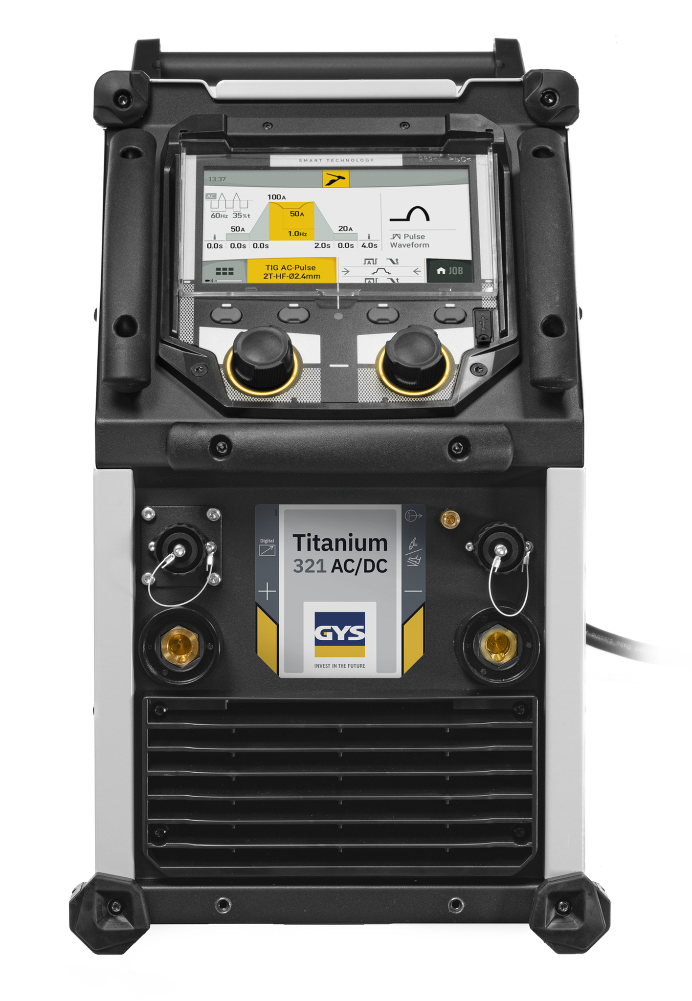 TITANIUM 321 AC/DC je vysoce výkonný AC/DC TIG generátor navržený tak, aby nabízel široký výběr svařovací procesy (TIG AC, DC, MMA). Umožňuje sestavení všech typů materiálů; měkká ocel, Nerezová ocel, hliník, měď, titan. Také ideální pro svařování tenkých tloušťek, jeho režim Pulzní režim snižuje deformaci a zajišťuje lepší kontrolu oblouku. Intuitivní a vysoce funkční, je XXL digitální rozhraní usnadňuje nastavení parametrů svařování.