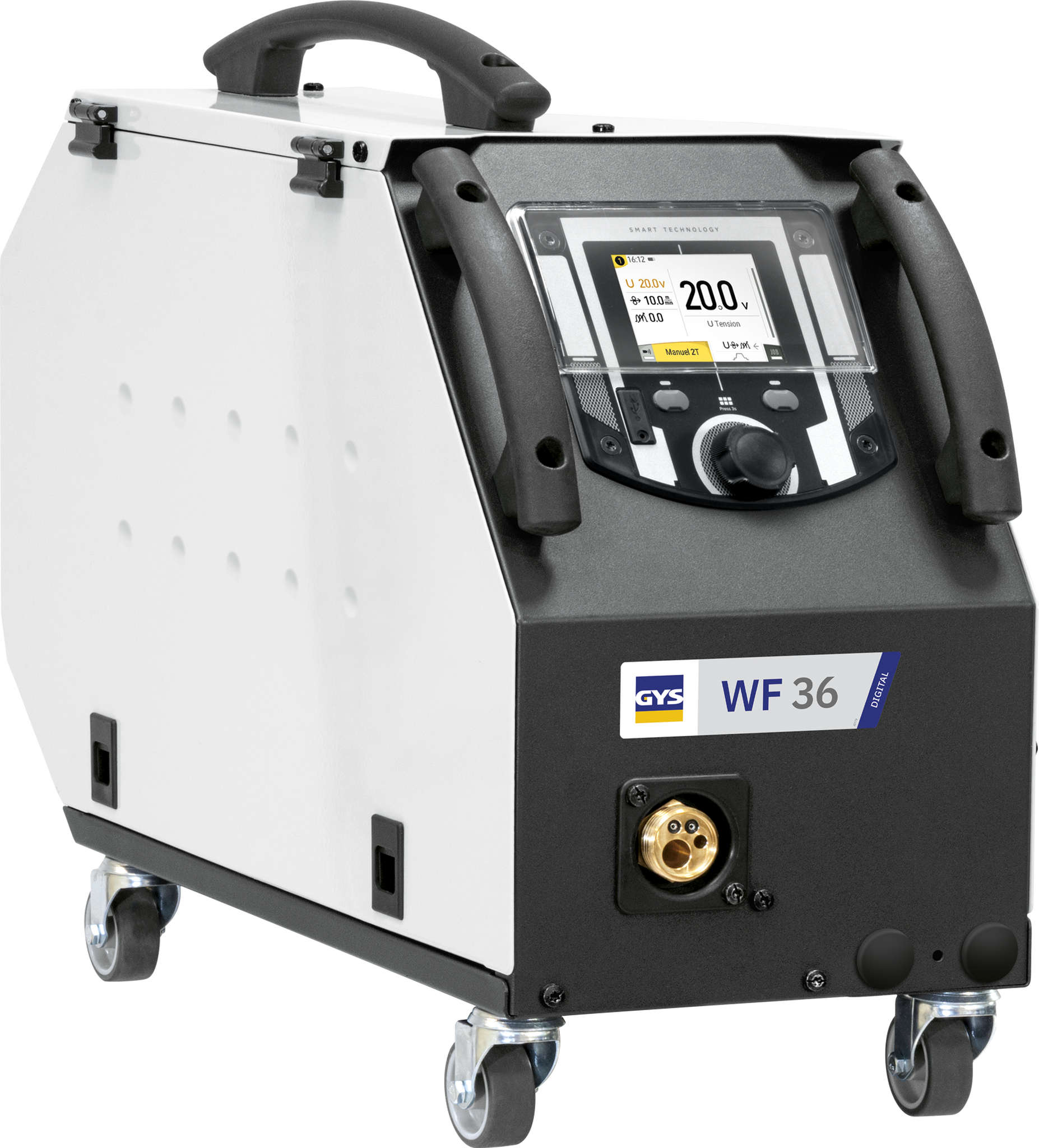Navržený pro napájení GALAXY, samostatný cívek WF 36 má faktor velmi vysokých 500 A při 60 %. Jeho 4 válečky a enkodérové ovládání zajišťují přesné a plynulé rozvíjení Svařovací drát bez ohledu na typ materiálu. Jeho 3,5" barevná obrazovka je snadno přístupná a rozhraní je intuitivní 2 režimy zobrazení: Easy nebo Expert.