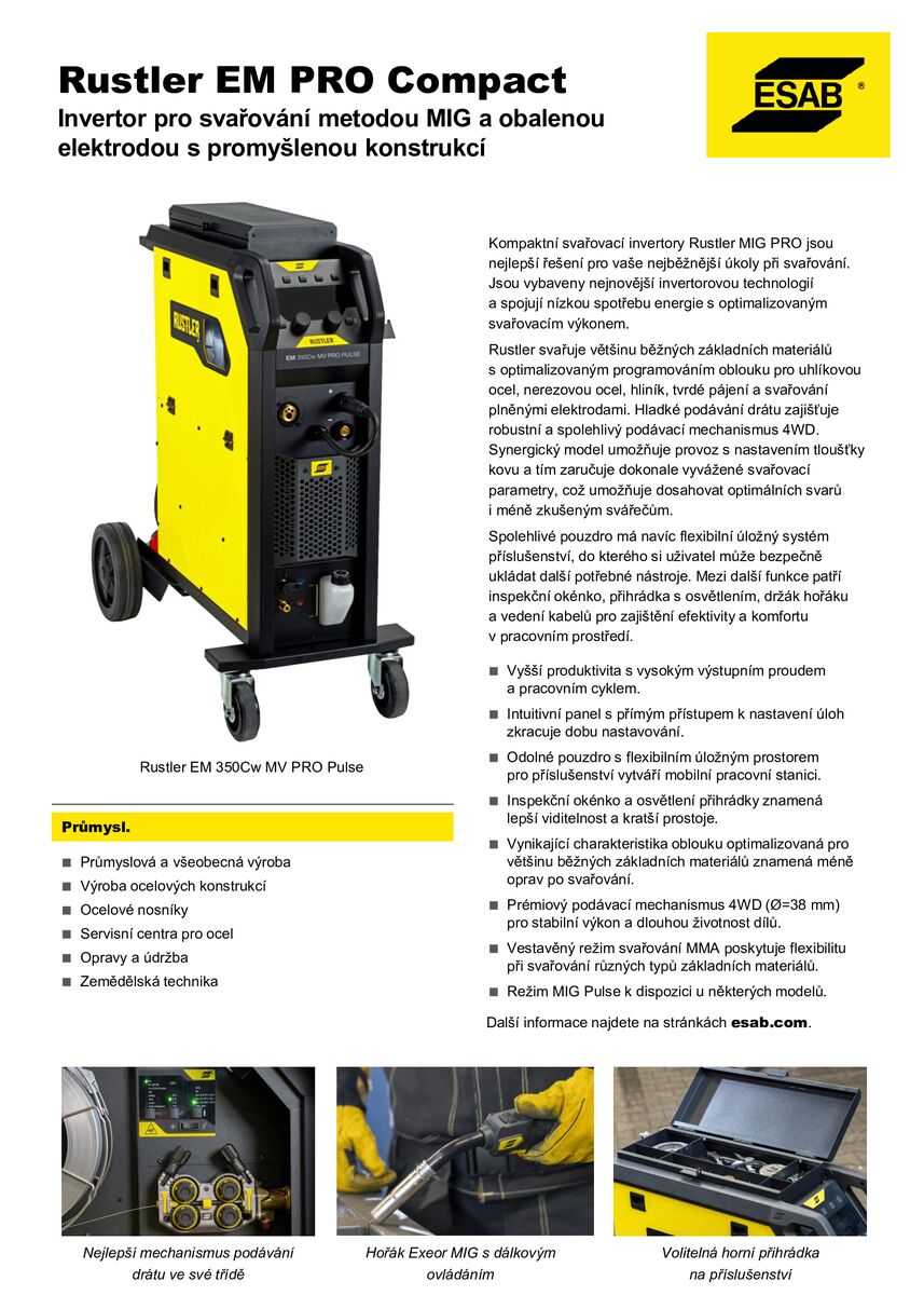 Rustler EM 350Cw PRO Pulse je vodou chlazený MIG/MAG invertor, který kombinuje pokročilou pulzní technologii s nejvyšší spolehlivostí. Je speciálně navržen pro profesionální průmyslové aplikace, kde delší doba svařování a vyšší zatížení vyžadují stabilitu, účinné chlazení a konzistentní výkon.